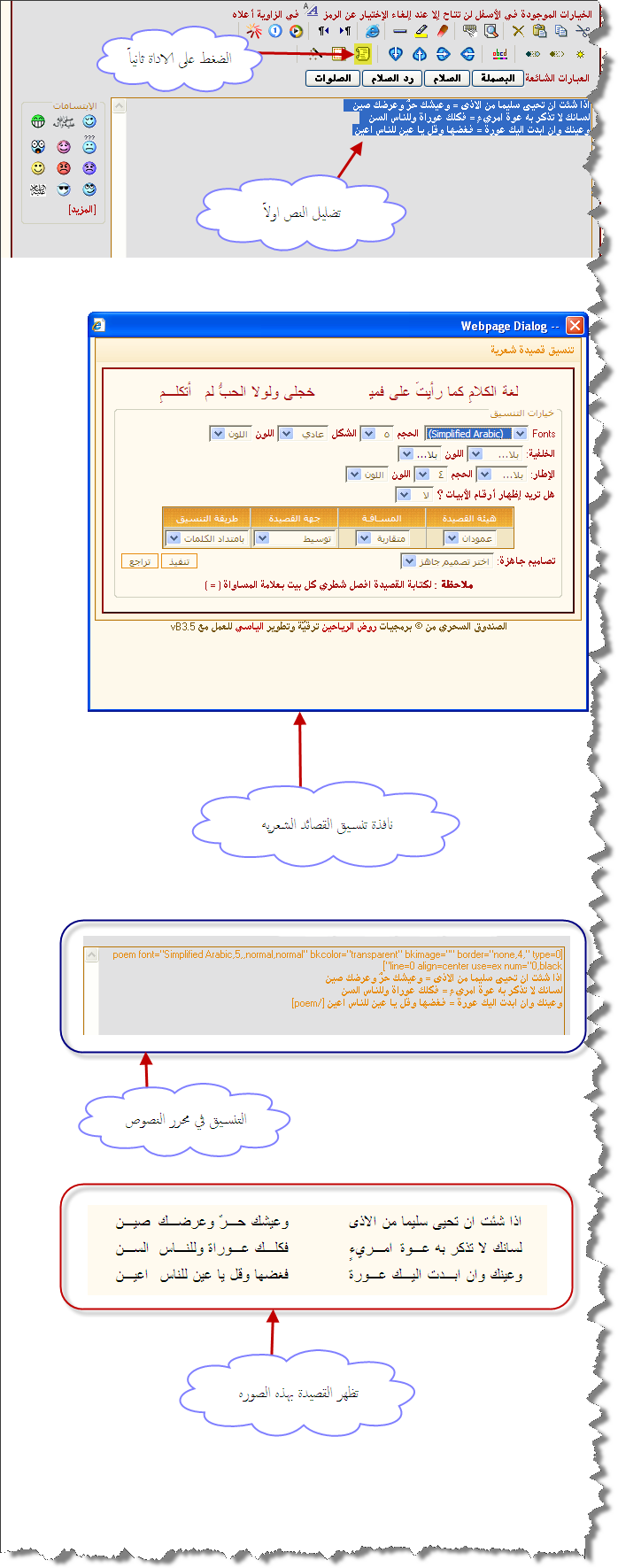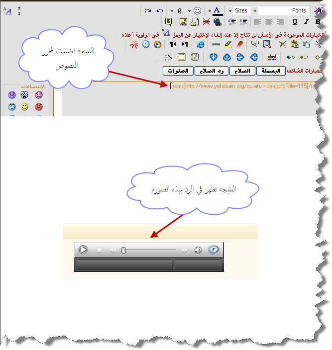 كما قلنا ان الاداة خاصه بالابتسامات وهي موجزة وثمة قسم اخر على يسار محرر النص