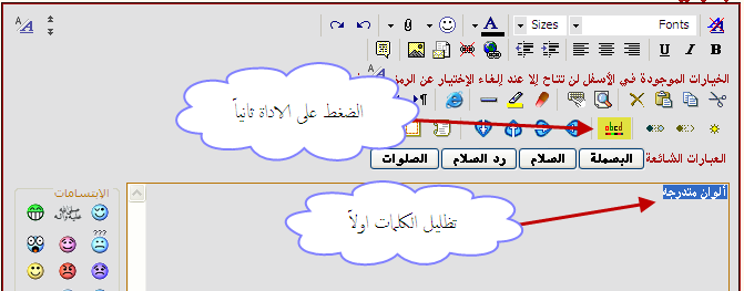 طريقة العمل :- بتظليل الكلمات المراد التأثير عليها بهذه الاداة