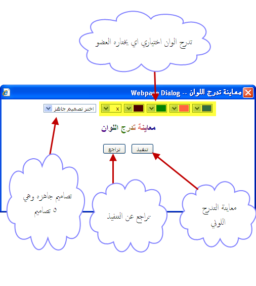 فبعد اختيار العضو لأطار معين يضغط على زر تنفيذ
