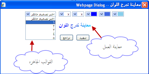بالأضافه الى ان هناك قوالب جاهزة للتدرج اللوني وهنَّ خمس ايضاً
