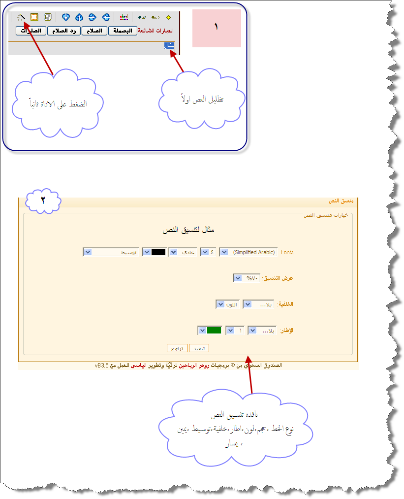 تظليل النص المطلوب تنسيقه من ثم الضغط على الاداة لتحول العضو الى نافذه اخرى وهي نافذة الاداة