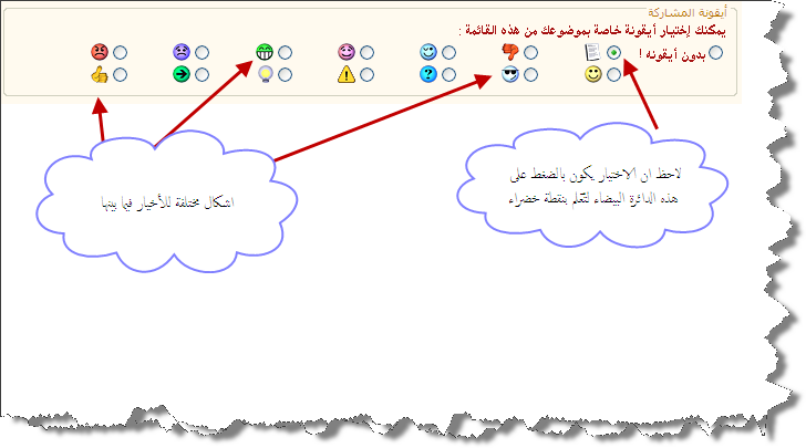 وهو خيار يتيح للعضو وضع ايقونة مع عنوان مشاركته كما اسلفنا شرحها