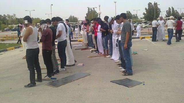 اي صلاة هذه ؟؟ ويصلون بالقرب من الاسلحة البيضاء التي تم الاعتداء بها على البنات والاسعاف و الشباب الابرياء !