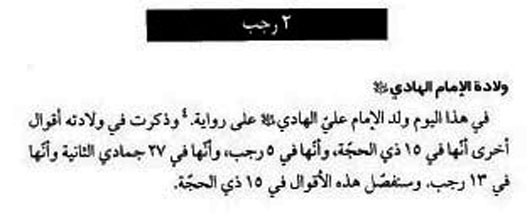 3 ـ توجد في أغلب مناسبات الولادات والشهادات أقوالٌ نادرة أو غير مشهورة، ونحن بعد اختيار القول الأقوى والأشهر نذكر بقيّة الأقوال في آخر المناسبة، وفي بعض الموارد ـ مثل شهادة الزهراء عليها السلام الواردة في عدّة أيّام ـ ذكرناها جميعاً.