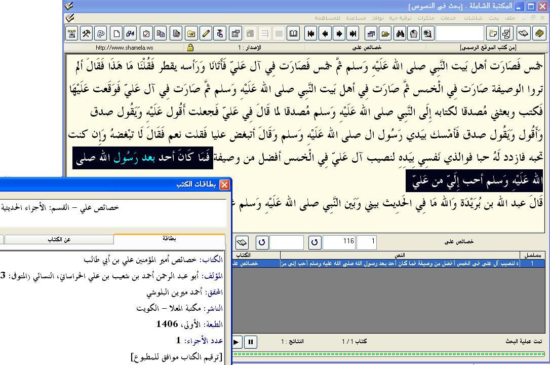 في الشاملة عند النسائي في الخصائص هذا النص : فَمَا كَانَ أحد بعد رَسُول الله صلى الله عَلَيْهِ وَسلم أحب إِلَيّ من عَليّ
