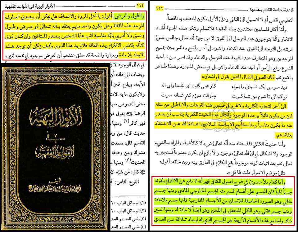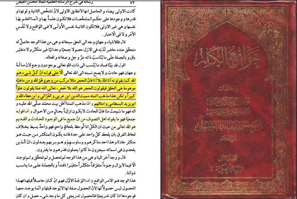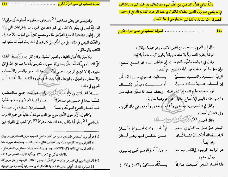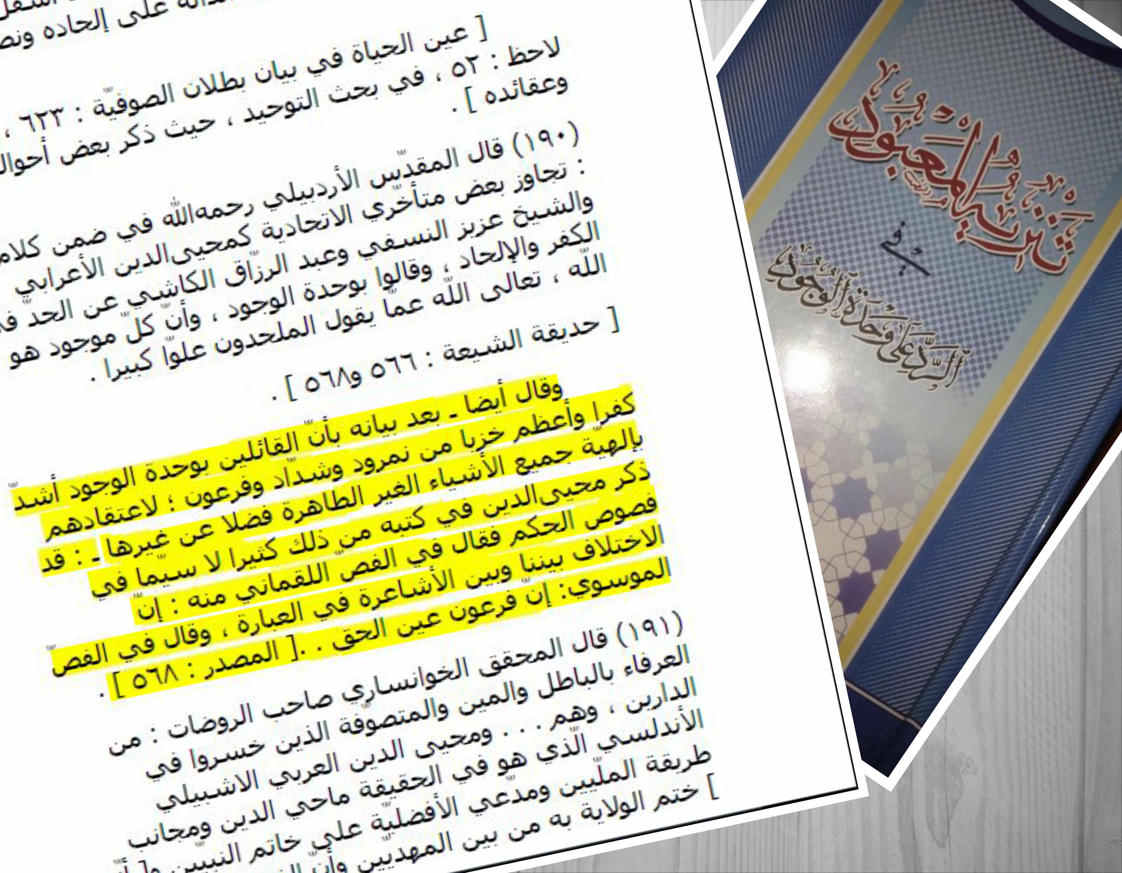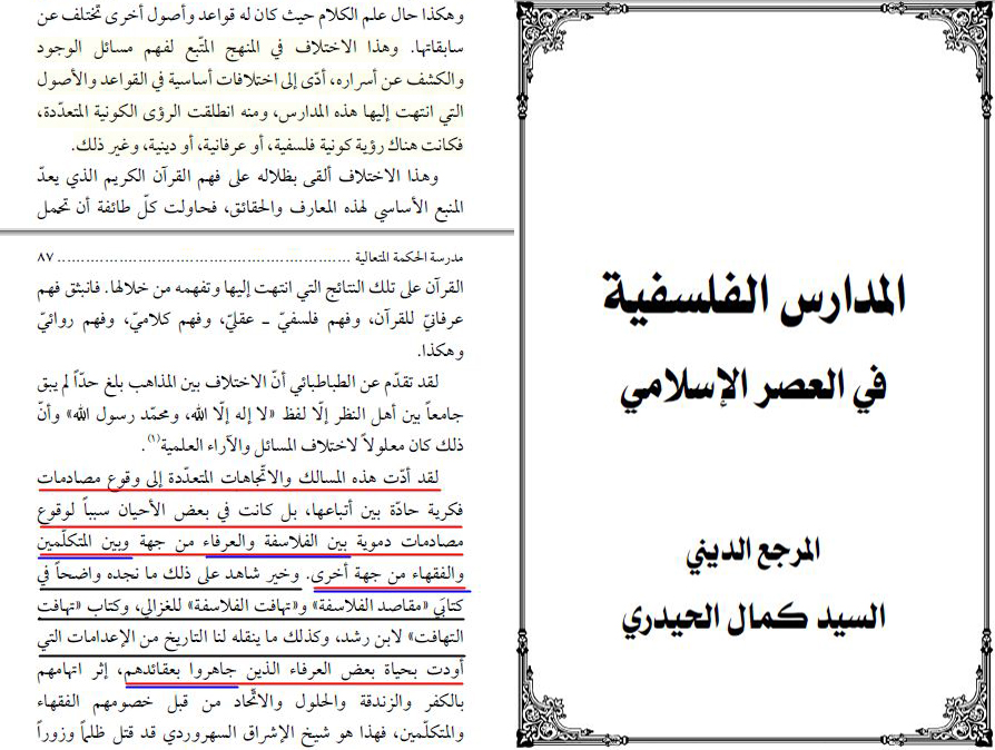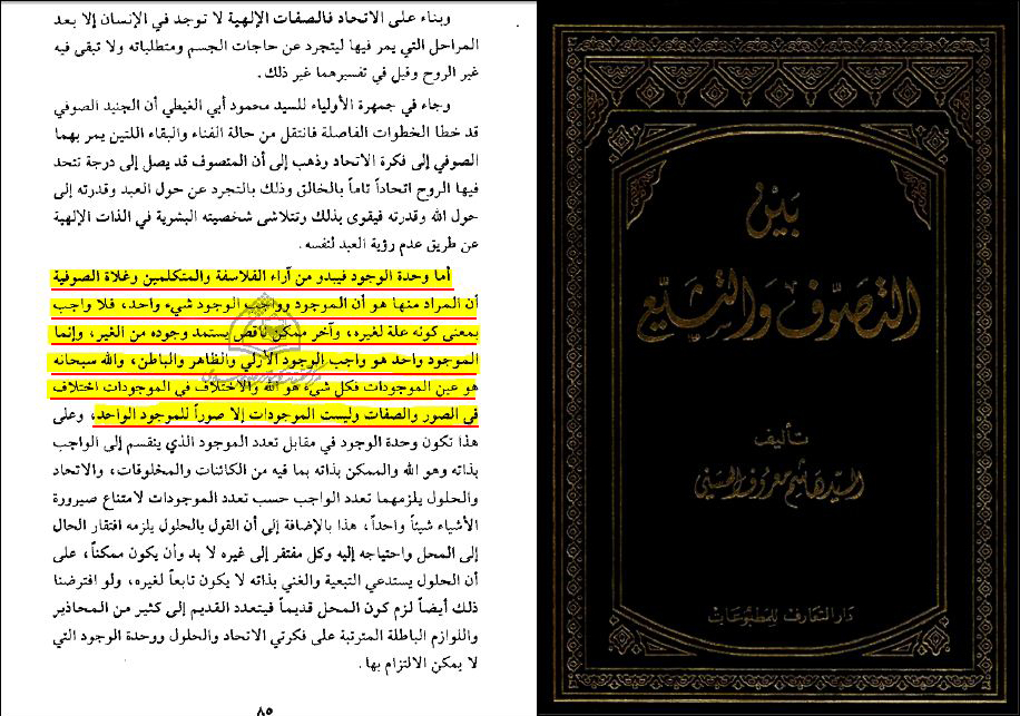 وزعم بعض الشيعة البسطاء أن هؤلاء(اي العرفاء والصوفية) أهل الحق وأحسن من في العالم، فيقرؤون كلامهم ويكفرون، وبزعمهم أن كل صوفي على مذهب الحق ولا يقول إلا من الله تعالى، ولا يعلمون أن الكفر والباطل قد ملئا