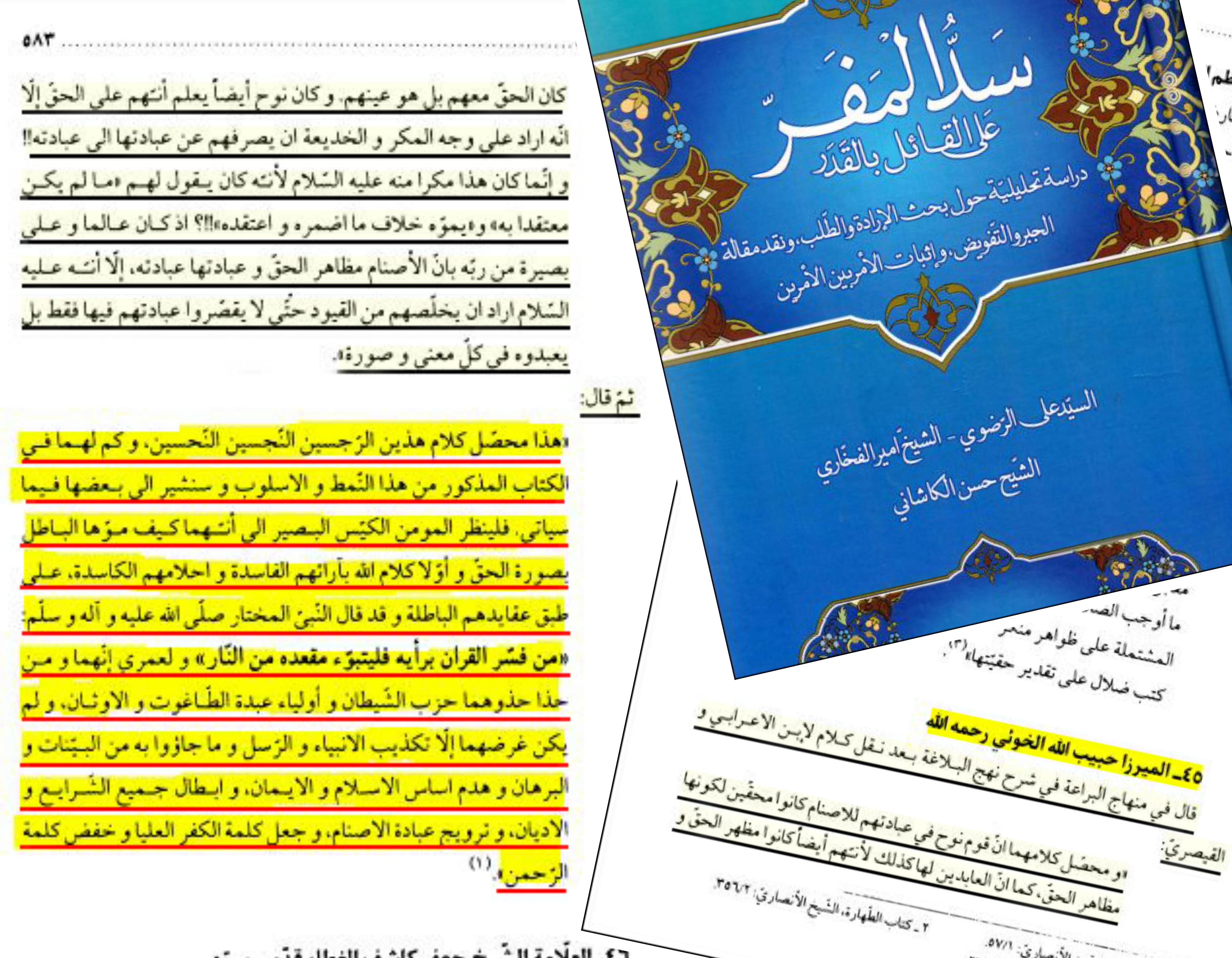 المصدر : كتاب المعالم الزلفى في شرح العروة الوثقى الصفحة 357 , سد المفر على القائل بالقدر 598-599