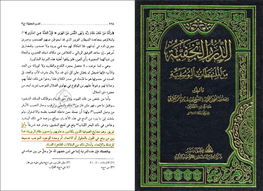 و لهذا أن جملة ممن داخله العجب بنفسه و الاغترار، و لم يلتفت إلى ما ورد من المنع في هذه الأخبار، و ولج بزعمه في ذلك الباب، و خاض في ذلك البحر العباب وقع في لجج المضيق، و صار فيه غريقا و أيّ غريق. و هم مشايخ الصوفية الذين يكادون بدعاويهم يزاحمون مقام الربوبية؛ فما بين من وقع في القول بالحلول أو الاتحاد، أو (وحدة الوجود) الموجب جميعه للزندقة و الإلحاد، و أمثال ذلك من المقالات الظاهرة الفساد.