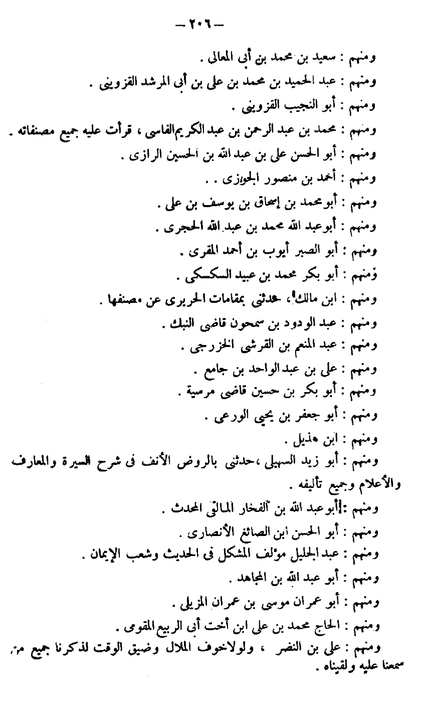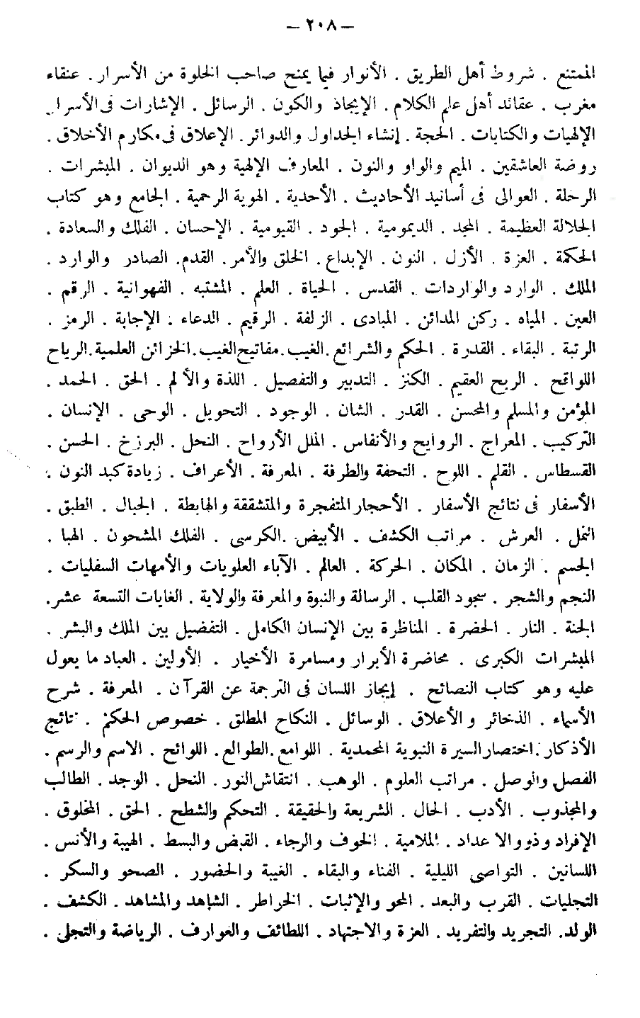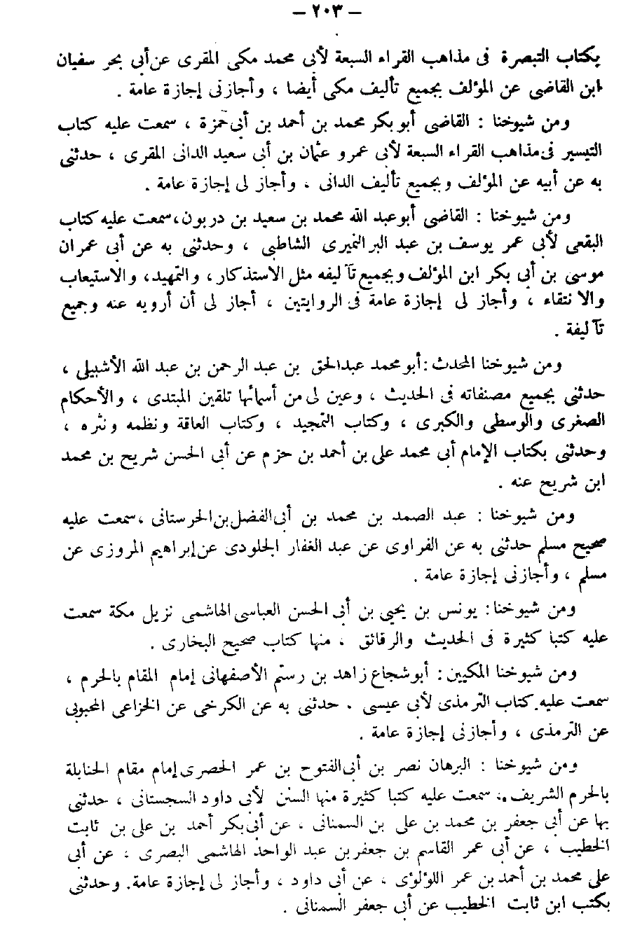 وقد ذكر ترجمة للشيخ الاكبر ابن عربي بها مجموعة من شيوخه وكتبه في علم الحديث والحقيقة