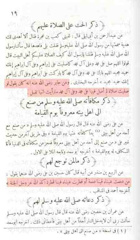 ورد في كتاب "ذخائر العقبى في مناقب ذوي القربى" للعلامة الحافظ محب الدين الطبري الصفحة 19 / في ذكر ما لمن توجع لهم -اي اهل البيت-: