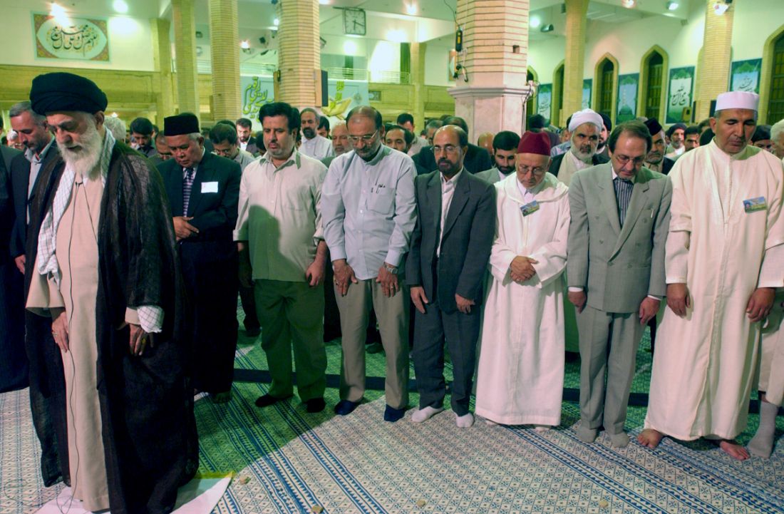 اليكم صورة فخرنا وعزنا ونعمة الله علينا السيد علي خامنائي... وقد ائتم بمجموعة من العلماء وحفاظ وقراء القرآن من مختلف انحاء العالم الاسلامي...