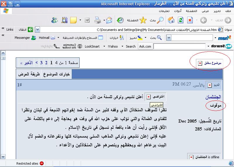 ولكن للأمانة فإن العضو لم يتم إيقافه بسبب هذا الرد، ولا أعتقد او كما يبدو بأن العضو سني وتشيع، فمن يقرأ ردوده يتيقن بأنه شيعي ...