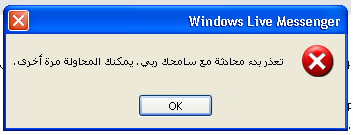 وهي أنني لا استطيع التحدث مع احد فبمجر ان انقر دبل كليك تظهر لي هذه النافذة المرفقه